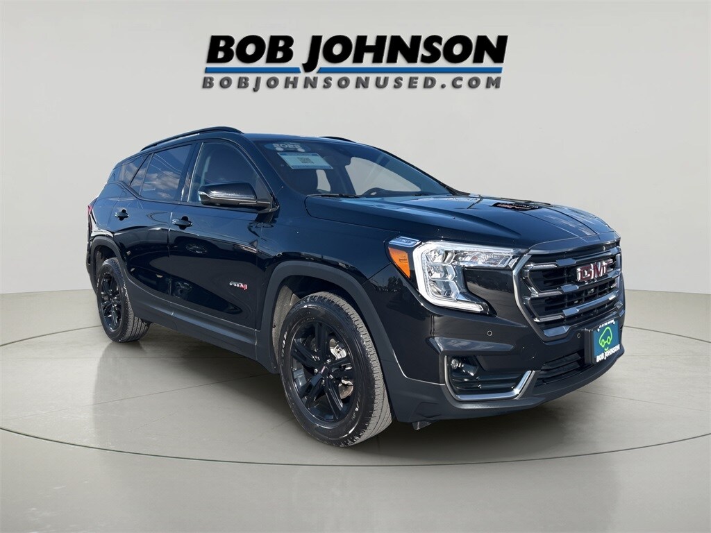 Experience confident capability and premium comfort in this AWD 2022 GMC Terrain AT4, now CARBRAVO CERTIFIED. The smooth 9-speed automatic transmission pairs with a capable 1.5L DOHC engine to deliver responsive acceleration and impressive efficiency, estimated at 25/28 MPG. Inside, youll ride in refinement with features like the Skyscape Power Sunroof w/ Power Sunscreen, Head-Up Display, and a Safety-focused cabin equipped with GMC Pro Safety Plus, Lane Change Alert w/ Side Blind Zone Alert, Rear Cross-Traffic Alert, Rear Park Assist, and Safety Alert Seat. The tech suite includes HD Surround Vision, the Tech Package, and a comprehensive infotainment system to keep you connected and informed on every journey. Exterior details such as Ebony Twilight Metallic finish, 19-inch wheels, and a rugged yet refined stance signal both versatility and style, while the Power Liftgate adds everyday convenience. Certified with a low odometer and CARBRAVO certification, this Terrain AT4 blends off-road-ready capability with everyday practicality. Schedule a test drive or come see it in person to feel the balance of luxury and capability. Please verify the accuracy of information in regard to the actual vehicle equipment, miles, vehicle specifications, location, and vehicle price with dealer.